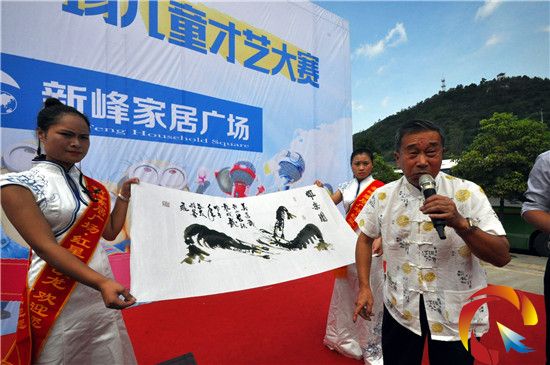 本網訊 9月13日上午,凱里地區少兒才藝大賽在凱里新峰家居廣場隆重舉行,“貴州怪杰”唐世友到現場表演拳畫指書,引起轟動。