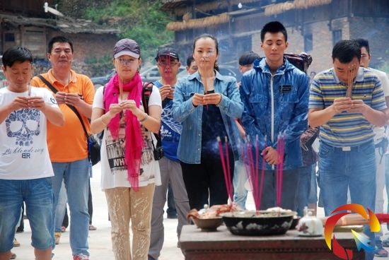 9月16日上午《侗族大歌》劇組按照侗族習俗舉行“祭薩”儀式。在從江縣的侗寨,凡村里有重大活動和節慶必先祭拜祖母神“薩歲”,拜過“薩歲”預示著一切順利成功。(張琪 攝)
