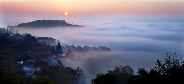 今年6月開始,《侗族大歌》劇組在黔東南經過兩個月的探尋,在從江縣高增鄉發現了一個保存完好的侗寨群,包括美德、民主等附近5個侗族村落約1200多戶人家。這里的侗寨層次錯落有致又相對集中,堪稱從江的“千戶侗寨”。這里既有寨子,有鼓樓,也有峽谷、有風水林、有梯田、有云海,猶如仙境一般的美讓劇組驚喜不已。