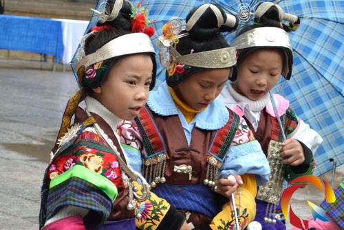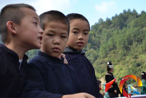 雷山賽段,前往郎德苗寨的賽道上,幾個打氣的小孩子正好奇的觀看記者的鏡頭。