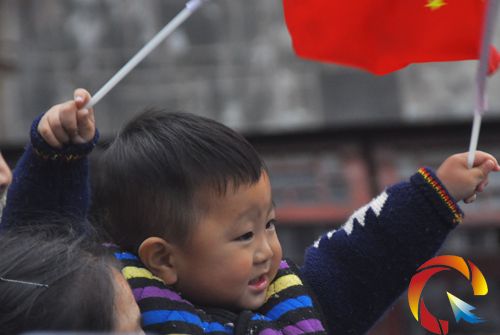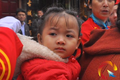在家人的背上觀看運動員在鎮遠的競技。