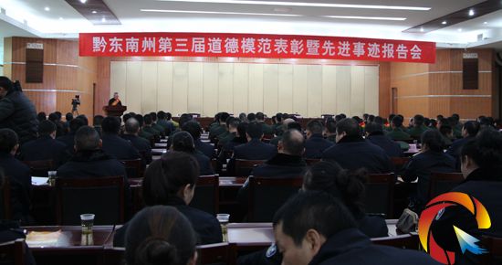 本網訊 12月25日,黔東南州第三屆道德模范表彰暨先進事跡報告會在黔東南州人民政府會議室舉行,黔東南州第三屆道德模范、州文明委領導、州文明委成員單位分管領導、各縣市文明辦負責人、凱里軍分區、武警黔東南州支隊、武警黔東南州消防支隊、州醫院等單位300余人參加報告會。
