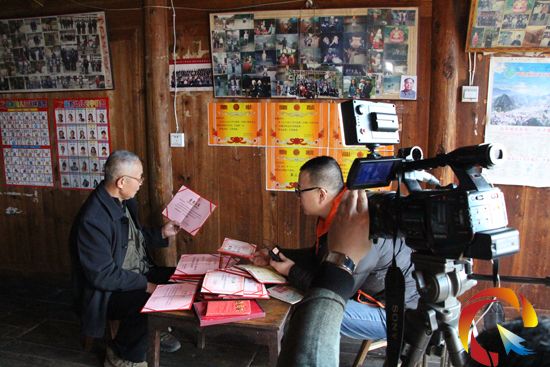 12月21日至25日,央視12套《道德觀察》欄目攝制組深入雷山縣對張希才模范事跡進行跟蹤采訪拍攝專題片。專題片從張老師30年來所發表的6300篇稿件中選取10篇典型稿件為拍攝線索,用故事再現張老師采寫新聞時的酸甜苦辣,把他在老家黃里的生產生活、縣城新聞采寫的生活及參加表彰會的個人報告融合在一起,該片預計在2015年上半年播出。圖為攝制組深入西江鎮黃里村采訪“草鞋記者”張希才的情景 。(李雪)