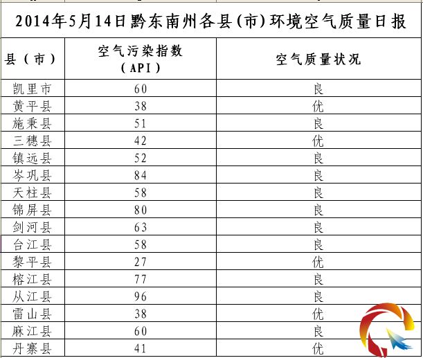 2014年5月14日黔東南州各縣(市)環境空氣質量日報