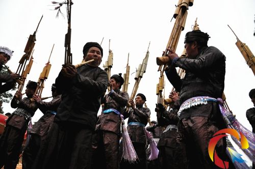 完畢,鑼鼓聲、蘆笙聲齊響,祭祖活動(dòng)進(jìn)入高潮。參加祭祖的蘆笙隊(duì)還要舉行游行,跟著祭師尋找“一個(gè)遙遠(yuǎn)的東方”之地,一起迎接先祖進(jìn)寨,保佑村寨平安幸福,風(fēng)調(diào)雨順,五谷豐登。(胡濤 攝影報(bào)道)