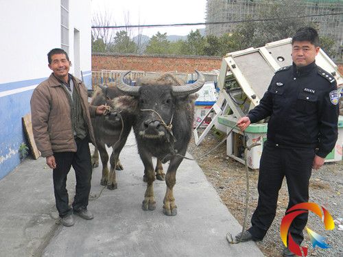 見此情況,民警立即與指揮中心取得聯(lián)系,查找有無走失耕牛的報警信息,一邊看護(hù),一邊向附近群眾了解情況查找耕牛的主人,經(jīng)過一番打聽后,在場的群眾都表示沒聽過哪家的耕牛走失,也不知道這兩頭耕牛到底為哪家所有。鑒于這種情況,民警只好將兩頭耕牛(兩頭黑色水牛)牽回車江派出所臨時看管。