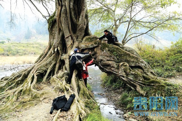 榕江縣有一株古榕樹,樹根下可泊一條木船。