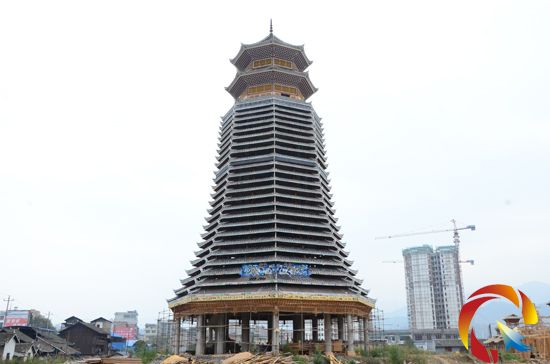 據介紹,這座鼓樓采用混泥土與木質結構修建,鼓樓總占地600平方米,有27層重檐,高55.8米,它建成之后,將打破此前世界最高53米的侗寨鼓樓記錄而成為世界之最。