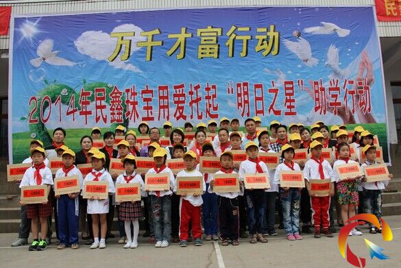本網(wǎng)訊 5月30日,貴州省民鑫珠寶有限責任公司、貴州省人口福利基金會、施秉縣計劃生育協(xié)會在黔東南州施秉縣楊柳塘鎮(zhèn)中心小學攜手舉行“萬千財富行動”、2014民鑫珠寶—用愛托起“明日之星”助學行動。