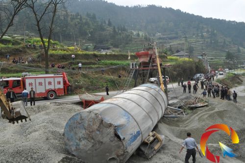 本網(wǎng)訊 3月27日11時(shí)30分,天柱縣消防大隊(duì)接到縣公安局指揮中心調(diào)度稱:天柱縣注溪鄉(xiāng)注溪村沖王2組沖王沙廠內(nèi)一混凝土攪拌站的80噸水泥罐無(wú)故倒塌,致使正在鏟車內(nèi)休息的鏟車司機(jī)鐘某被埋。請(qǐng)求消防大隊(duì)立即前往救援。 險(xiǎn)情就是命令,大隊(duì)立即組織調(diào)集8名消防官兵,出動(dòng)1輛搶險(xiǎn)救援車趕赴事故現(xiàn)場(chǎng)。