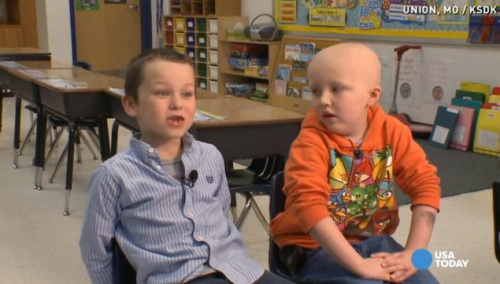 據(jù)外媒報道,美國密蘇里州一名5歲男童得知好朋友患癌,并因接受化療而脫發(fā)后,決定同甘共苦,也剃了光頭和好友成了“光頭二人組”。男童還為好友籌募醫(yī)藥費,真可謂是患難見真情。
