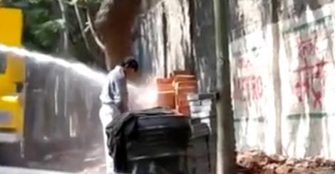 據報道,孟買政府日前開始在街頭派出黃色灑水車,車上貼著“你停,我們就停”的標語,遇到有人街頭小便,就會毫不留情地用“水炮”狂噴一通。除了灑水車,巡視人員還會背上水炮,在街頭巡邏,甚至從屋頂監控,不放過任何一個角落,隨時隨地給隨地小便者澆成個“落湯雞”。