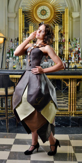 據悉,這條奢華的巧克力禮服和其他耀眼的巧克力服飾一道,在“巧克力時裝秀”上展出。