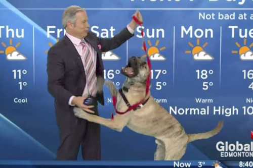 邁克向觀眾介紹,這只一歲8個月大的小狗名叫里普爾(Ripple)。但他根本不理會邁克的話,不愿意安靜坐在一旁,不停地咬繩子、扯袖子,邁克一邊應付這只胡鬧的小狗一邊預報天氣。這場滑稽的直播在里普爾將它的繩子咬斷時達到了頂峰,連后臺工作人員都禁不住笑出了聲。
