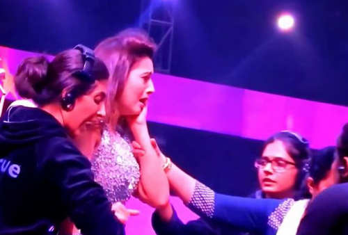 克汗隨后被護(hù)送離開(kāi)現(xiàn)場(chǎng)。但在經(jīng)過(guò)一段時(shí)間的情緒恢復(fù)后,她又返回現(xiàn)場(chǎng)完成錄制。