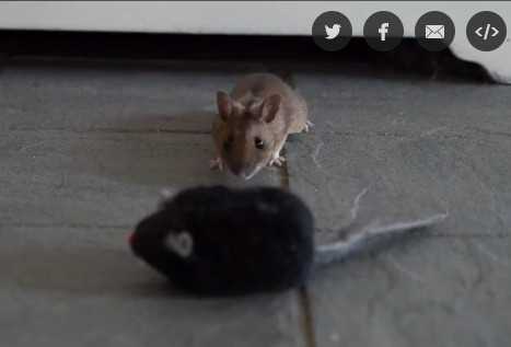 奧德伯格表示:“當(dāng)我下樓去看的時候,發(fā)現(xiàn)這只小老鼠正和玩具在玩耍。它發(fā)現(xiàn)我以后嚇了一跳趕緊躲了回去。我隨后把攝像頭安置好,把玩具鼠放在地上,然后躲開了。”
