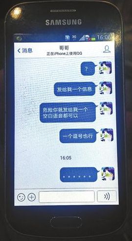 更令人不解的是,昨天零點前,其哥哥的手機QQ顯示下線。而在凌晨四五點時,邊亮偉的手機上顯示其哥哥的手機QQ處于在線使用狀態。邊亮偉試著給哥哥發送信息,詢問哥哥在哪里,但對方一直沒有回應。