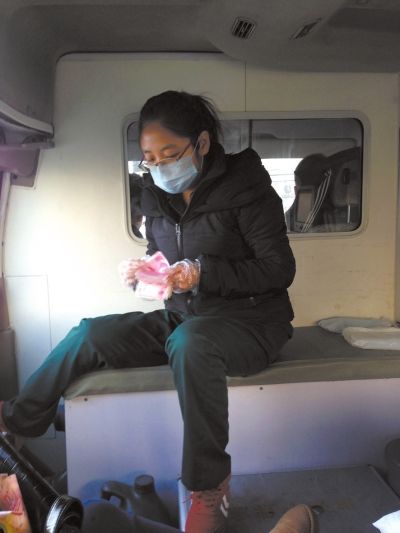 隨車“護士”收錢后現場清點。