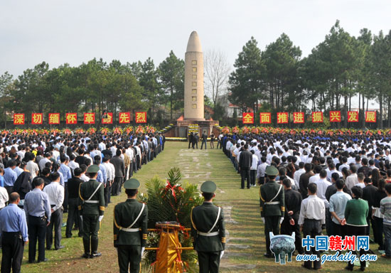 市黨政班子成員,市中級人民法院院長、市人民檢察院檢察長,贛州出口加工區黨委書記、龍南經濟技術開發區管委會主任,江西理工大學、贛南師范學院、贛南醫學院、江西應用技術職業學院、江西環境工程職業學院、贛州師范高等專科學校黨委書記,章貢區、贛縣、南康區、信豐、大余、上猶、崇義、安遠、龍南、全南、定南、興國、寧都、于都、瑞金、會昌、尋烏、石城縣(市、區)委書記,部分市直、駐市單位負責人,瑞金市四套班子領導,國家部委代表,老紅軍、老干部及烈士后代代表,社會各界人士代表,解放軍、武警、民兵預備役官兵和公安干警代表,群眾代表,學生代表共2000余人參加了瑞金主祭場祭奠。