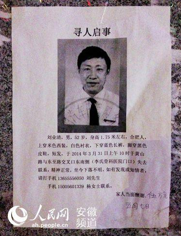 焦急中等待了一個(gè)多月,直到5月12日上午,劉業(yè)清的家人突然接到合肥市警方打來(lái)的電話:“劉業(yè)清找到了,卻已經(jīng)死了。”