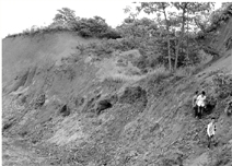 這個挖掘場位于永康江南街道石溪村村口,這里有一片開闊地,有一個黃泥坡。黃泥坡上有10多個大小不一的坑洞。這些坑洞,大的直徑四五米,小的直徑兩三米,坑洞內有明顯的挖鑿痕跡。