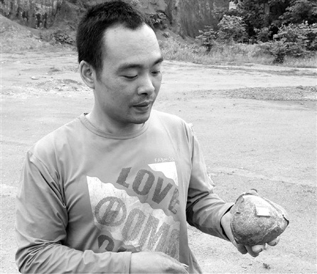他說,石頭剛挖出來時很大,外面比較軟,可以像剝雞蛋殼一樣用鐵鎬敲掉。敲掉幾層后,里面就比較硬了,他們就把那塊石頭帶走。