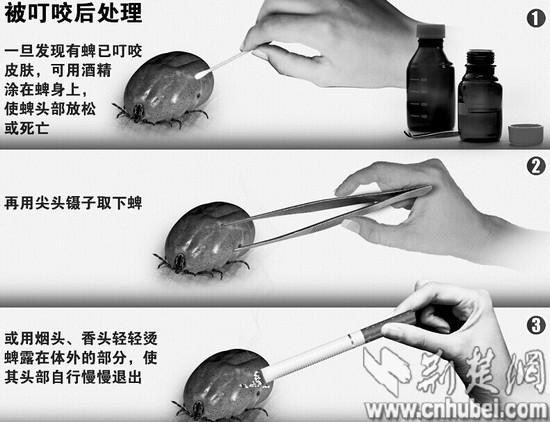 熊進峰說,蜱蟲咬人后,必須盡快取出,若任其叮咬,輕者數(shù)年內(nèi)遇陰雨天氣,患處便瘙癢難忍;重者,高燒不退、深度昏迷、抽搐,引起類似流感或登革熱的出血熱及腦炎。