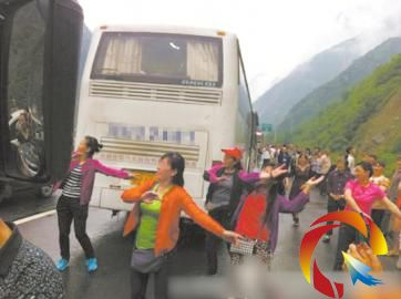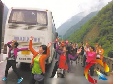 “我車上有49名乘客,都是60歲以上的老人,本來要從都江堰到紅原去。結果前面出現事故,堵車了。”左師傅回憶,自己從后視鏡看到有人在跳舞,還很奇怪,“車上的人也都下去圍觀了。圖里面站在后面的一群老人,就是我的乘客。”