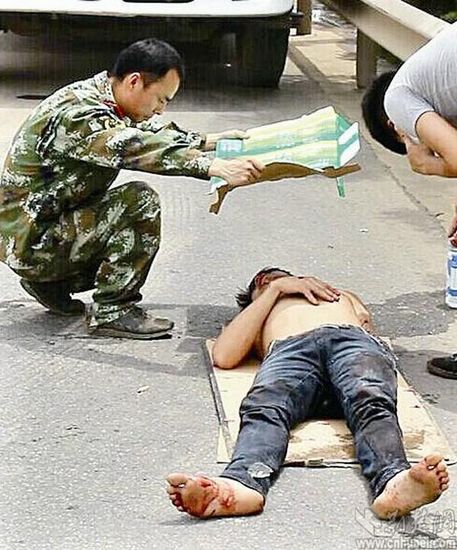 消防員救下一名車禍傷者,可由于交通堵塞,救護(hù)車一時(shí)難以趕到。傷者躺在地上,烈日當(dāng)頭,一名消防員端著紙盒,為他遮陽達(dá)10余分鐘。這一幕感動(dòng)了現(xiàn)場(chǎng)群眾,有人贊他“遮陽哥”。據(jù)悉,這是5月29日中午發(fā)生在東湖高新區(qū)高新大道上的一幕。昨日,記者找到這名叫汪少文的消防員,他說:“只想減輕點(diǎn)他的痛苦。”楚天都市報(bào) 記者汪亮亮 通訊員李國柱 張爭(zhēng)衛(wèi)