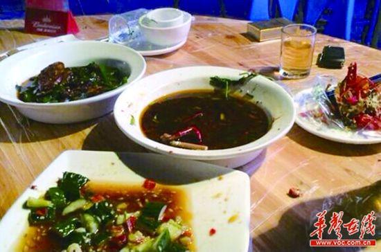 當晚零點30分,陸續有客人結賬離開。記者見狀主動上前去收拾餐具殘渣。可正當記者要把餐桌上剩下的口味蝦湯汁倒掉時,立即遭到女服務員和傳菜師傅劉剛制止。“這個湯廚房還要的,潑不得。以后收桌子的事不用你管。”女服務員小聲地埋怨記者。她麻利地收拾了桌上的碗筷,唯獨留下裝有剩蝦的湯缽。