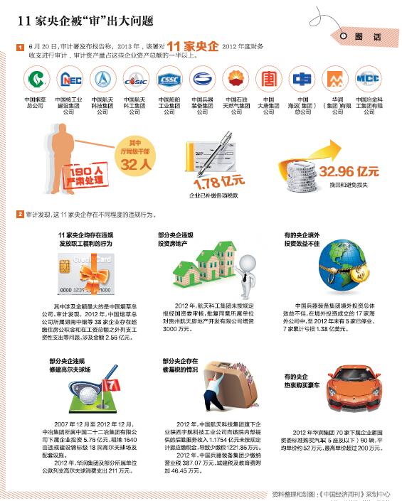 2.審計(jì)發(fā)現(xiàn),這11家央企存在不同程度的違規(guī)行為。
