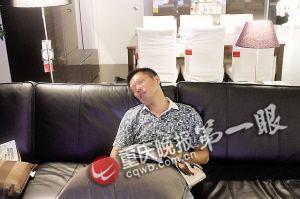 中午1時許,沙發區。記者發現一名穿格子花紋衣服的顧客,坐在黑色沙發上看雜志,似乎是在等人。記者轉了一圈回來,發現他已睡得“不省人事”,雖然旁邊聲音嘈雜,似乎一點不影響他。記者再過半個小時回來,他已睡醒,繼續看雜志。