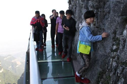“玻璃棧道扶墻族”