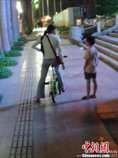 據了解,6日00:05,網友"戴沫黎Molly”發微博稱:“今天在珠海十一點左右,一個女人騎著自行車,手里拴著鏈子,拖著男孩一直走……”“男孩脖子出血”,她在微博上附有幾張圖片。