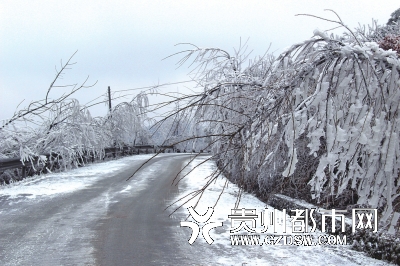 鎮遠縣羊場鎮道路被冰雪覆蓋。