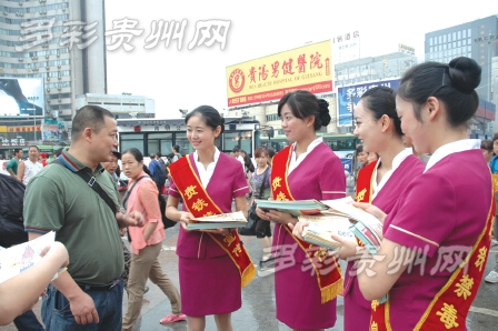 連日來,成都鐵路局貴陽客運段的“動姐”在貴陽火車站及貴陽至北京、上海、廣州的列車上亮相,她們身著紫色動車套裙,以標準的普通話和甜美的微笑宣傳毒品的危害,勸大家珍惜生命、遠離毒品。(許毅 張丁歡 苗國強)