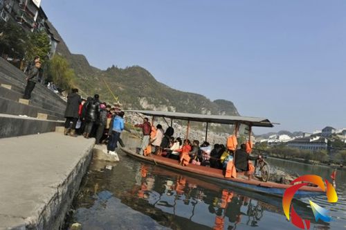 12 月31日,記者在鎮遠縣委門口處的古碼頭看到,碼頭上站著七、八位正在候船的市民,從對岸駛來的船只剛剛啟航,還沒有到達。記者看到,穿上滿是乘客,有的坐著,有的站著。船夫慢慢的搖動著船槳,船只緩慢朝對岸駛來,隨著船槳的擺動,水面上蕩起了微波,微波慢慢擴散,然后消失。