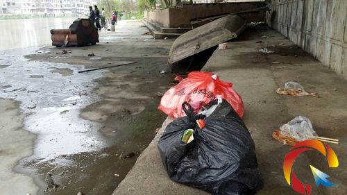 除了河面上漂著垃圾,部分河段的河岸也有很多垃圾,盤龍橋下,就是如此。橋下有一個(gè)廢舊皮沙發(fā),滿是灰塵和污垢。附近市民說(shuō),它在此處已一年多時(shí)間,無(wú)人問(wèn)津。“留在此處,確實(shí)是大煞風(fēng)景”。