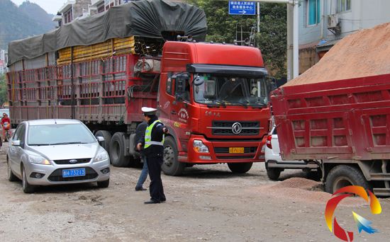 現場指揮救援疏導的鎮遠縣交警大隊楊副大隊長介紹:出事地點是交通主干道,路面經過挖掘回填不久,當時正值交通高峰時期,大隊5名交警在該路段執勤保暢。一輛拉載滿滿一車水泥磚的拖拉機行徑加油站門口一處軟泥路面時,車輛左后輪陷入泥中,動彈不得。正當交警準備施救時,一輛更大的拉載滿車沙子的自卸貨車在準備繞過事故車輛時,車輛右后輪突然陷入路面,險些翻覆。出事兩車占據了大半個路面,導致該路段暫時出現交通擁堵。