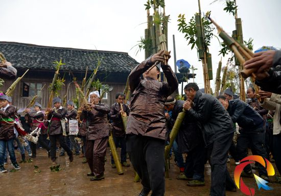 面向東方吹奏蘆笙,并齊聲吆喝三聲,送走蘆笙迎接新年