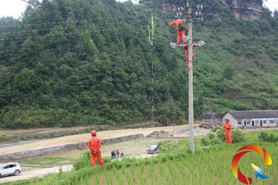 丹寨縣供電局工作人員爭分奪秒搶修電路