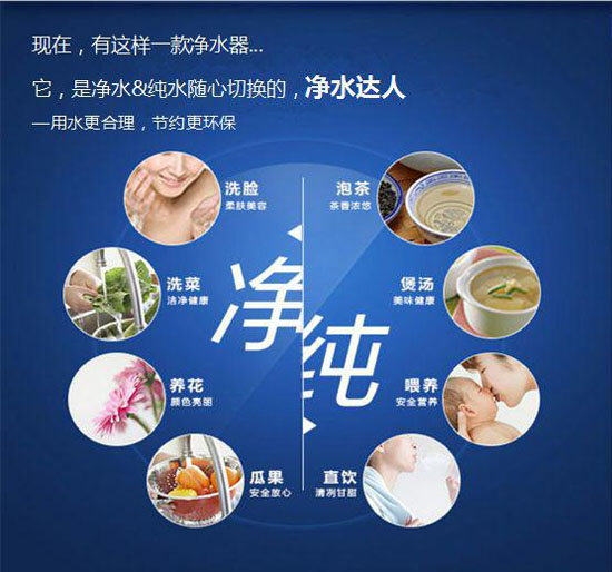 它實現雙水質分流,生活清潔/草木灌養選凈水,直接引用/做飯泡茶選純水,環保經濟。