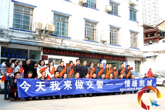 2015年1月14日,凱里市公安局交警大隊(duì)舉行“今天我來當(dāng)交警——情暖凱城”換位體驗(yàn)活動,凱里市各客運(yùn)企業(yè)負(fù)責(zé)人、駕駛員代表以及州內(nèi)媒體記者“零距離”體驗(yàn)交警一天的工作。