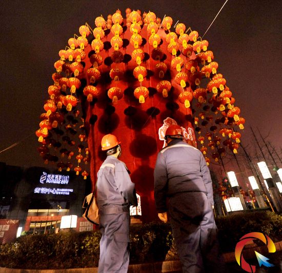 3月4日晚8點30分,凱里供電局員工深入到苗侗民族風情檢查城市中的燈籠