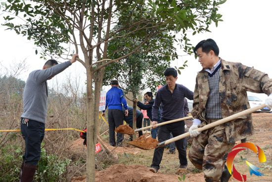 植樹現場,彩旗飄揚,熱熱鬧鬧。廣大干部職工揮舞著手中的鋤頭、鐵鏟,興致勃勃地參加義務植樹勞動。挖坑、抬樹、植樹、培土、澆水,大家分工協作,環環相扣,秩序井然,栽得認真,干得賣力,整個植樹活動現場,一片熱火朝天的勞動景象,不時響起勞動與奉獻的歡聲笑語。