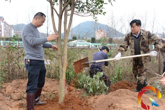 為提高植樹質量,該區事先對植樹區域的綠化進行了統一規劃,以桂花成年樹作為綠化樹種,帶根系和土球,并細致打穴,精心栽植,細致澆水,確保栽下的樹木成活。