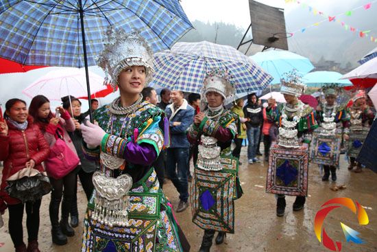 本網訊 1月18日是黎平縣平寨鄉塘舊侗族村的牯藏節,盡管小雨不斷,但節日現場還是很熱鬧,當地侗族女孩的手工華麗服飾吸引著千名中外游客的眼球,成了節日現場最靚麗的風景。