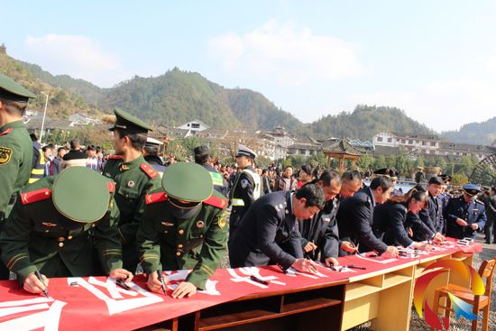 本網訊 為吸取凱里市“1·13”禁賭爆炸案件的教訓,有效遏制賭博違法犯罪活動及引發的社會治安問題,確保社會大局的平安和諧穩定。2015年1月13日,由雷山縣綜治辦、縣公安局牽頭組織政法系統、宣傳、工商、國稅、地稅、文體、婦聯、交通以及雷山二中、三中等1000余名干部職工師生,在縣城木鼓廣場舉行了以“1.13”集中開展禁毒宣傳活動,“110與你攜手共創平安”為主題的禁賭簽名活動,并發放了《治安管理處罰》打擊處理賭博違法行為的法律規定、怎樣區分賭博與娛樂、“遠離賭博陋習,倡導文明風尚倡議書”等禁賭宣傳資料10000多份。