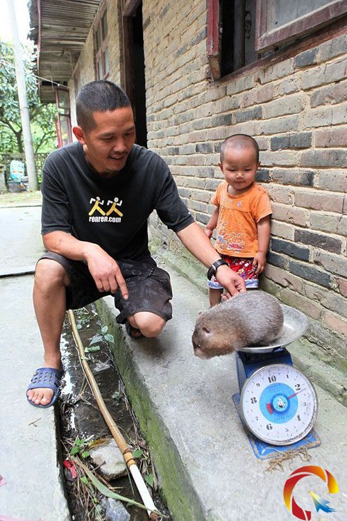 2007年的一天,石華文像往常一樣,牽著“懶漢”花狗上山(打獵)了,來(lái)到一個(gè)半山腰,花狗用靈敏的鼻子嗅了幾下,一下子跑到一個(gè)小洞口,用前爪往外刨開(kāi)土。石華文竊喜,洞里面肯定有貨了。石華文快步上去,拿出隨身攜帶來(lái)的鋤頭挖下去,不一會(huì)兒功夫,他看見(jiàn)洞里有一窩有四只毛融融的竹鼠崽。這么小,吃也忍不下心。石華文抱回家來(lái)放進(jìn)一個(gè)壇罐里,自己養(yǎng)。