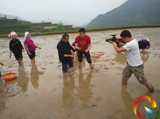 北京電視臺節目主持人與苗族同胞一塊下田學點秧